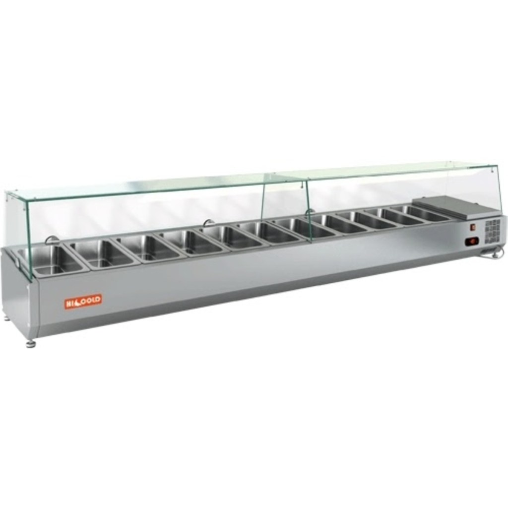 Каталог оборудования Холодильное оборудованиеВитрины для ингредиентовВитрина холодильная для ингредиентов HICOLD VRTG 2280 к PZ3 (1/3) Витрина холодильная для ингредиентов HICOLD VRTG 2280 к PZ3 (1/3) Код товара: 064-658 Поделиться: WhatsAppTelegram СравнитьДобавить в КПВ избранное 0 84 609 ₽ В корзину 0 шт Под заказСамовывоз сегодня бесплатно Взять в кредит Купить в лизинг Получить консультацию в WhatsApp Описание Характеристики Отзывы 0 Инструкции 3 Витрина холодильная для ингредиентов HICOLD VRTG 2280 к PZ3 (1/3) предназначена для охлаждения, кратковременного хранения и демонстрации ингредиентов, салатов и готовых блюд на предприятиях общественного питания и торговли. Устанавливается на холодильные столы для пиццы серии PZ3 благодаря встроенным креплениям в нижней части корпуса. На фото показана аналогичная модель с настольной установкой. Ключевые особенности: Корпус из нержавеющей стали — долговечность, простота ухода. Электронная панель управления — точная регулировка температуры. Исполнение G — стеклянная надстройка для удобного обзора продуктов. Высота витрины — 459 мм — компактное размещение на рабочей поверхности. Вместимость: 11xGN1/3 — рациональная организация хранения (гастроёмкости приобретаются отдельно). Совместимые модели столов: PZ3-1111/SN, PZ3-1111/GN HICOLD VRTG 2280 к PZ3 (1/3) — это профессиональная настольная витрина, которая сочетает компактные размеры, современное управление и высокое качество охлаждения. Отличный выбор для пиццерий, ресторанов и кафе, где важны удобство доступа, скорость работы и эффектная подача продуктов.Изображение товара, представленного на фото, может отличаться от его фактического вида. Показать все Габаритные размеры2280×385×459 ммДиапазон рабочей температурыот +2 до +7 °CДлина2280 ммГлубина385 ммВысота459 ммТип крышкиСтеклянная Гастроемкостей11 штТип гастроемкостейGN1/3 Мощность150 ВтРасход электроэнергии в сутки0,15 кВтНапряжение220 ВТип охлажденияСтатическое Материал изготовленияНержавеющая сталь ХладагентR134 Мощность0,15 кВтВес нетто65 кгВес брутто109 кгТип оттайкиРучная Габариты в упаковке2380×485×559 ммБрендHicold Оставить отзыв Еще никто не оставил отзыв на этот товар Инструкция на HICOLD VRTG 2280 к PZ3.pdfСхема установки на стол.jpgДекларация о соответствии.pdf Похожие товары Перейти в каталог Под заказ 63 732 ₽ Витрина для ингредиентов Carboma A30 SM 1,6-G (7 GN1/4) В наличии 46 889 ₽ Витрина холодильная для ингредиентов Tatra TVR1200-4GN1/3 Под заказ 84 879 ₽ Витрина холодильная для ингредиентов HICOLD VRTG 2280 1/3 Под заказ 50 158 ₽ Витрина холодильная для ингредиентов HICOLD VRTO 1390 к PZ3 (1/3) Под заказ 50 575 ₽ Витрина для ингредиентов Polair VT2-G (1/3) с крышкой Под заказ 49 764 ₽ Витрина для ингредиентов Carboma A30 SM 1,6 (7 GN1/4) Под заказ 64 792 ₽ Витрина холодильная для ингредиентов HICOLD VRX 1500 1/3 В наличии 40 943 ₽ Витрина холодильная для ингредиентов HURAKAN HKN-VRX1500/380 С этим товаром покупают Под заказ 108 891 ₽ Стол морозильный HiCold SN 1/BT Под заказ 51 621 ₽ Льдогенератор HURAKAN HKN-IMF20 (пальчики) В наличии 68 097 ₽ Шкаф холодильный Polair СМ 105-S Ранее просмотрено Под заказ 89 578 ₽ Витрина холодильная для ингредиентов HICOLD VRTG 2360 к PZ3 (1/3)