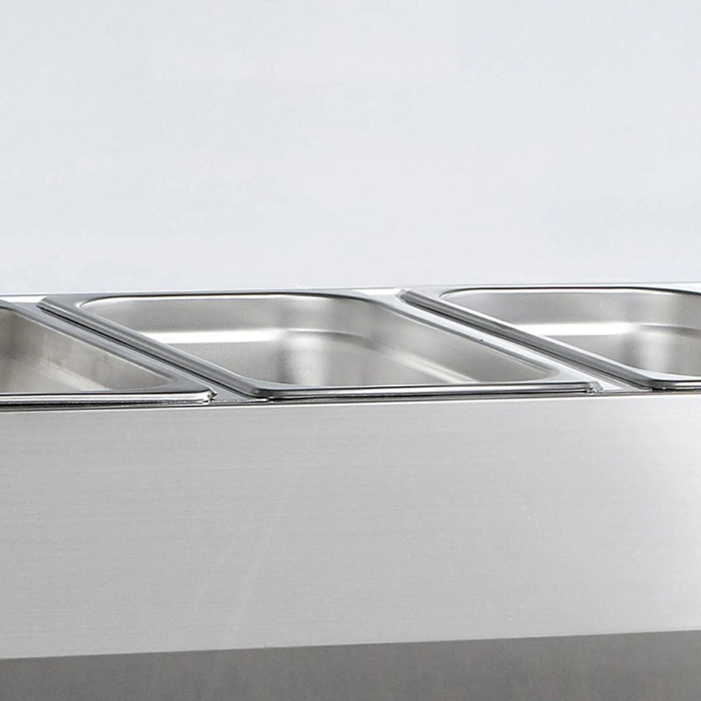 Каталог оборудования Холодильное оборудованиеВитрины для ингредиентовВитрина холодильная для ингредиентов TEFCOLD VK38-120 Витрина холодильная для ингредиентов TEFCOLD VK38-120 Код товара: 010-384 Поделиться: WhatsAppTelegram СравнитьДобавить в КПВ избранное 0 82 699 ₽ В корзину 0 шт В наличииСамовывоз сегодня бесплатно Взять в кредит Купить в лизинг Получить консультацию в Max Описание Характеристики Отзывы 0 Витрина холодильная для ингредиентов TEFCOLD VK38-120 предназначена для кратковременного хранения и демонстрации готовых салатов, мясных и рыбных закусок, а также ингредиентов на предприятиях общественного питания и торговли. Корпус и внутренняя обшивка выполнены из нержавеющей стали, что обеспечивает долговечность и легкость очистки. Гастроемкости в комплект не входят. Особенности: Статическое охлаждение — равномерное поддержание температуры для деликатных продуктов. Механическое размораживание — надежное удаление наледи без вмешательства пользователя. Хладагент R600a — экологичный и энергоэффективный. Электронный термостат и градусник — точная настройка и контроль температуры. Гнутый стеклянный колпак — обеспечивает обзор продукции и защиту от внешних воздействий. Регулируемые ножки — удобная установка и устойчивость на неровной поверхности. Климатический класс 4 — работа при температуре окружающей среды до +32°C. Вместимость — 4×GN 1/3 глубиной 150 мм, удобно для салатов и закусок. Перегородки — 3 длинных и 4 коротких для удобного разделения продуктов. Уровень шума — 47 дБ, почти бесшумная работа. Хладагент — 0,04 кг, эффективное охлаждение при минимальном расходе. Внутренние размеры — 845×305×155 мм, компактное размещение емкостей. TEFCOLD VK38-120 — компактная и надежная витрина для демонстрации и кратковременного хранения продуктов с безопасным поддержанием температурыИзображение товара, представленного на фото, может отличаться от его фактического вида. Показать все Габаритные размеры1200×395×435 ммДиапазон рабочей температурыот +2 до +10 °CДлина1200 ммГлубина395 ммВысота435 ммТип крышкиСтеклянная Гастроемкостей4 штТип гастроемкостейGN 1/3 Мощность0,112 ВтНапряжение220 ВТип охлажденияСтатическое Уровень шума47 дБКлиматический класс4 ХладагентR600a Вес нетто40 кгВес брутто45 кгТип оттайкиРучная Габариты в упаковке1280×440×310 ммБрендTefcold Оставить отзыв Еще никто не оставил отзыв на этот товар Похожие товары Перейти в каталог Под заказ Цена по запросу Витрина для ингредиентов Polair VT2-G (1/3) открытого типа Под заказ 60 350 ₽ Витрина для ингредиентов Polair VT2v-G (1/3) с подсветкой и защитным колпаком С этим товаром покупают В наличии 99 023 ₽ Стол холодильный среднетемпературный Polair ТМ2GN-G В наличии 161 242 ₽ Льдогенератор ICEMAKE ND 50 AS Под заказ 142 619 ₽ Шкаф холодильный МХМ Капри 1,5М нержавейка Ранее просмотрено АкцияВ наличии 9 703 ₽ Кипятильник HURAKAN HKN-HVN40 В наличии 8 331 ₽ Кипятильник HURAKAN HKN-PCY25