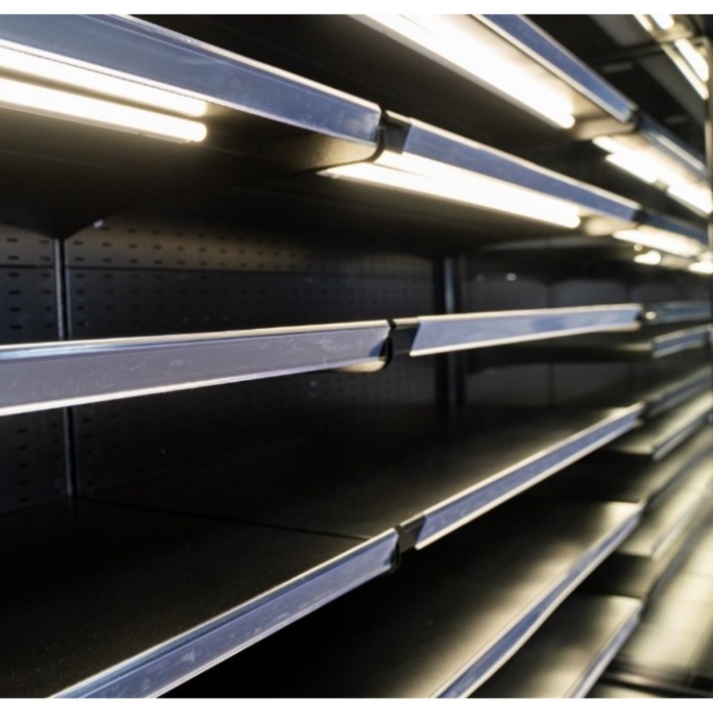• 5 рядов полок с удобными ценникодержателями.