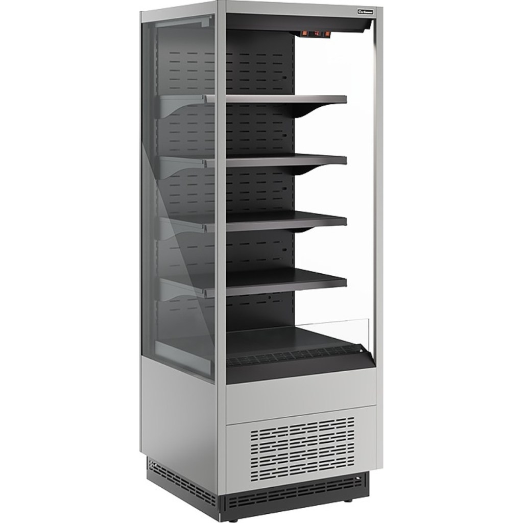 Горка холодильная Carboma FC20-07 VM 0,7-2 (версия 2.0) (ночная шторка) (9006-9005) применяется на предприятиях общественного питания и торговли для охлаждения, кратковременного хранения и предпродажной демонстрации напитков, мяса, птицы, полуфабрикатов, молочных и гастрономических изделий.
