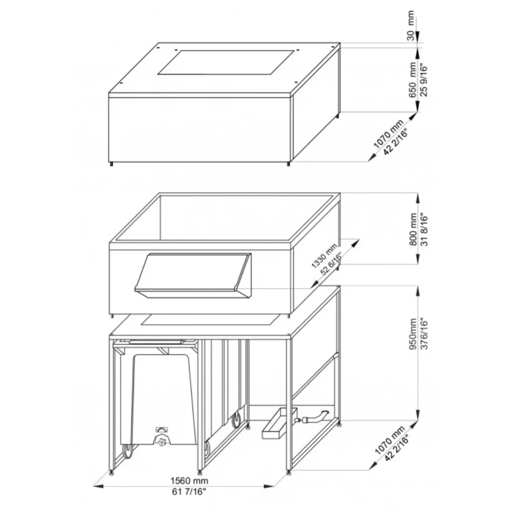 Каталог оборудования Холодильное оборудованиеЛьдогенераторыБункер для льда Brema Double Roller Bin 1200 (для Muster 800-1500, Split 800-1500) Бункер для льда Brema Double Roller Bin 1200 (для Muster 800-1500, Split 800-1500) Код товара: 066-700 Поделиться: WhatsAppTelegram 0 Цена по запросу Получить консультацию в WhatsApp Описание Характеристики Отзывы 0 Бункер для льда Brema Double Roller Bin 1200 (для Muster 800-1500, Split 800-1500) — профессиональный накопительный бункер для льда, предназначенный для работы с льдогенераторами Muster 800–1500 и Split 800–1500. Обеспечивает надежное хранение большого объема льда и оптимизирует рабочие процессы на предприятиях HoReCa и пищевой промышленности. Конструкция учитывает требования к гигиене и интенсивной эксплуатации. Прочная и легкоочищаемая конструкция, а также отличная теплоизоляция предотвращают таяние льда, сохраняя его оптимальное состояние длительное время. Тележка с колесами обеспечивает удобство транспортировки и быструю подачу льда в рабочую зону. Особенности: Совместим с льдогенераторами: Muster 800A, M Split 800, Muster 1500A, M Split 1500. Рама из нержавеющей стали 18/8 с отделкой Scotch Brite Тележка для сбора и транспортировки льда из пищевого полиэтилена Два вместительных контейнера с внутренней изоляцией Отличная теплоизоляция для сохранности льда Мобильность за счет 4 колес с ножным блоком Вместимость одной тележки: 108 кг Общая вместимость бункера: 1000 кг Brema Double Roller Bin 1200 — надежное и удобное решение для хранения и транспортировки льда на крупных объектах, обеспечивая бесперебойную работу профессиональных льдогенераторов.Изображение товара, представленного на фото, может отличаться от его фактического вида. Показать все Габаритные размеры1560×1330×2460 ммВместимость бункера1000 кгВес нетто251 кгБрендBrema Оставить отзыв Еще никто не оставил отзыв на этот товар