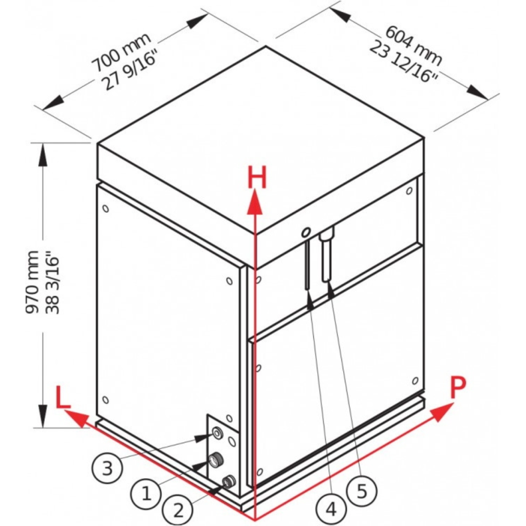 Корпус выполнен из нержавеющей стали AISI 304 с отделкой Scotch Brite, испаритель — из антикоррозийного сплава, детали — из FDA-одобренного пластика. Модель оснащена электромеханическим управлением и холодильным компрессором с экологичным хладагентом R452A.