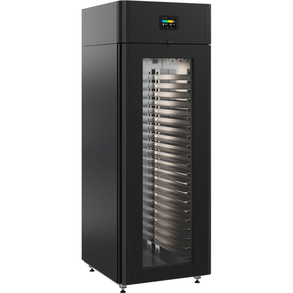 Каталог оборудования Холодильное оборудованиеШкафы холодильныеСпециализированные холодильные шкафыШкаф холодильный для хлебопекарных производств Polair CS107 Bakery Br черный, со стеклом (Тип 2) Шкаф холодильный для хлебопекарных производств Polair CS107 Bakery Br черный, со стеклом (Тип 2) Код товара: 062-625 Поделиться: WhatsAppTelegram СравнитьДобавить в КПВ избранное 0 405 365 ₽ В корзину 0 шт В наличии на 2 складахДоступно для заказа 2 шт.Наличие на складахМоскваМО, Бритово, Раменский гор. округ, Складской комплекс ССТ, корп. 2, секция 2В наличии 1 шт.Санкт-ПетербургЛО, Центральное отделение (Промышленный район), д.29 к3В наличии 1 шт.Самовывоз сегодня бесплатно Расчет стоимости доставкиОткудаМоскваСанкт-ПетербургКудаМоскваСанкт-ПетербургАстраханьБарнаулБелгородБрянскВладивостокВолгоградВоронежЕкатеринбургИвановоИжевскИркутскКазаньКалининградКемеровоКировКраснодарКрасноярскКурскЛипецкМагнитогорскМахачкалаНабережные ЧелныНижний НовгородНижний ТагилНовокузнецкНовосибирскОмскОренбургПензаПермьПятигорскРостов-на-ДонуРязаньСамараСаратовСимферопольСтавропольТверьТольяттиТомскТулаТюменьУлан-УдэУльяновскУфаХабаровскЧебоксарыЧелябинскЯрославльРассчитатьРасчет стоимости доставки указан приблизительный, более точный расчет Вам может осуществить сотрудник транспортной компании. Взять в кредит Купить в лизинг Получить консультацию в WhatsApp Описание Характеристики Отзывы 0 Инструкции 5 Шкаф холодильный для хлебопекарных производств Polair CS107 Bakery Br черный, со стеклом (Тип 2) предназначен для создания оптимальных условий хранения и расстойки тестовых заготовок на предприятиях общественного питания и торговли. Внешняя обшивка цельнозаливного корпуса выполнена из стали с полимерным покрытием чёрного цвета, внутренняя — из нержавеющей стали. Дверь изготовлена из стеклопакета. Оборудование рассчитано на работу при температуре окружающей среды до +40 °C. В комплект входит 20 пар направляющих размером 400×600 мм. Особенности: Универсальные режимы: охлаждение заготовок и замедление ферментации, хранение, регенерация, брожение и расстойка Динамическое охлаждение с мягким обдувом без заветривания и автоматическая оттайка с системой испарения конденсата Панель управления с 7-дюймовым дисплеем: контроль температуры, влажности (регулируется от 60 до 95 %), скорости вентилятора и времени; возможность создания и сохранения собственных программ Встроенный ультразвуковой увлажнитель (требуется подключение к системе водоочистки и канализации) Эргономичная конструкция: верхнее расположение агрегата, распашная дверь со стеклопакетом и механизмом самозакрывания, педаль для открытия, съёмные направляющие и легко заменяемый уплотнитель с магнитной вставкой Простота ухода: штампованное углубление в дне корпуса для сбора загрязнений Экологичный хладагент R290 Энергоэффективность: потребляемая мощность — 0,55 кВт (охлаждение), 0,9 кВт (нагрев) Толщина стенки корпуса — 43 мм Polair CS107 Bakery Br черный, со стеклом (Тип 2) — современный и многофункциональный шкаф отложенной расстойки, позволяющий точно контролировать процессы подготовки теста и хранения заготовок. Благодаря продуманной конструкции, расширенным режимам и удобному управлению, он идеально подходит для пекарен и кондитерских, стремящихся к высокому качеству продукции и эффективной работе.Изображе