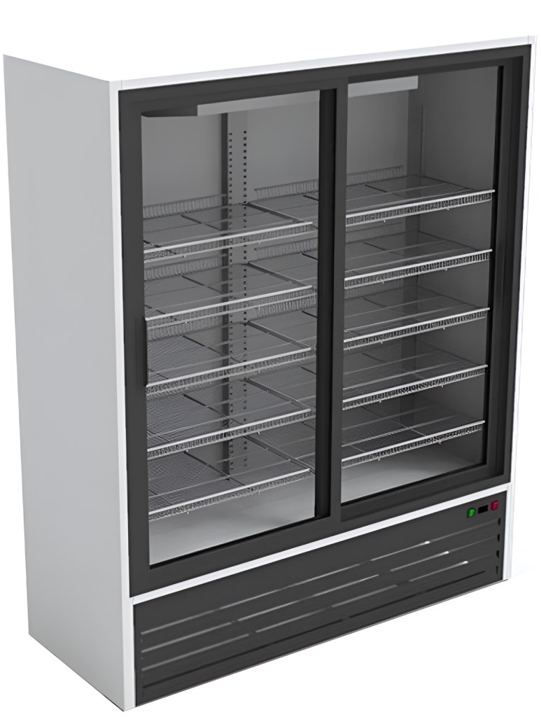 Он поддерживает продукты и напитки при оптимальной температуре, одновременно обеспечивая их демонстрацию покупателям. Раздвижные стеклянные дверцы (купе) делают товар хорошо видимым и экономят пространство, что особенно важно для гипермаркетов и торговых точек. На кухне или в производственных помещениях шкаф удобен для кратковременного хранения ингредиентов, полуфабрикатов и готовых блюд, обеспечивая быстрый доступ к продукции.