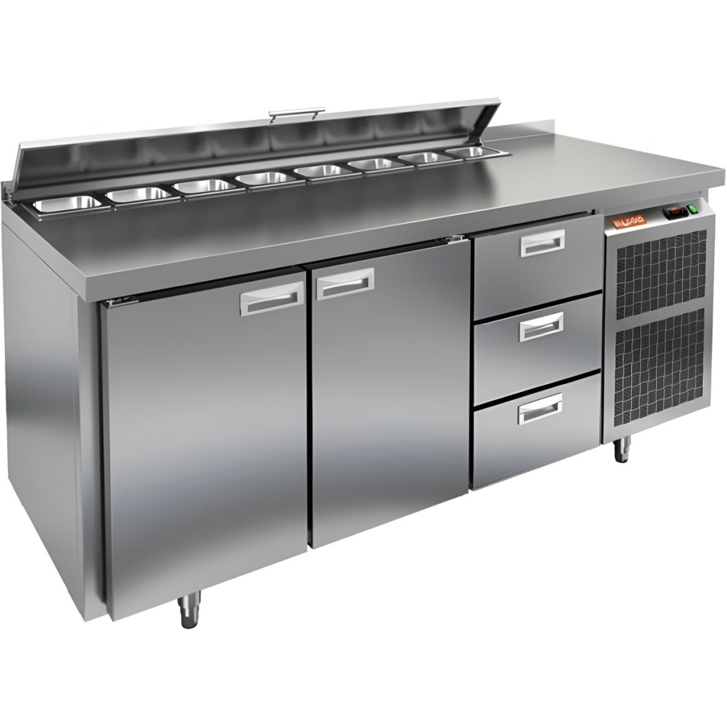 Каталог оборудования Холодильное оборудованиеСтолы охлаждаемыеСтолы холодильные для салатовСтол холодильный для салатов HiCold SL1-113GN (1/3) с крышкой Стол холодильный для салатов HiCold SL1-113GN (1/3) с крышкой Код товара: 064-842 Поделиться: WhatsAppTelegram СравнитьДобавить в КПВ избранное 0 214 192 ₽ В корзину 0 шт Под заказСамовывоз сегодня бесплатно Взять в кредит Купить в лизинг Получить консультацию в WhatsApp Описание Характеристики Отзывы 0 Стол холодильный для салатов HiCold SL1-113GN (1/3) предназначен для использования на предприятиях общественного питания и торговли. Он объединяет рабочую поверхность и охлаждаемый отсек, что делает его удобным решением для хранения, охлаждения и подготовки ингредиентов при приготовлении салатов, пиццы и других блюд. Такая конструкция позволяет повару работать быстрее и эффективнее, так как все необходимые продукты находятся под рукой. Корпус и столешница выполнены из прочной нержавеющей стали, устойчивой к коррозии и легко поддающейся санитарной обработке. Металлическая крышка защищает продукты от загрязнений и сохраняет их свежесть. Особенности модели: Электронная панель управления — точная настройка температурного режима. 2 глухие двери — удобный доступ к холодильному отсеку. 3 выдвижных ящика — быстрое размещение и замена продуктов. Вместимость салат-бара — до 8 гастроемкостей глубиной до 100 мм. Автоматические доводчики дверей с фиксацией в открытом положении. Легкозаменяемые магнитные уплотнители — надежная герметичность. Открытая агрегатная часть — быстрый доступ для обслуживания. Регулируемые по высоте ножки — устойчивость даже на неровном полу. Толщина столешницы, борта и теплоизоляции — 50 мм, что обеспечивает прочность и энергоэффективность конструкции. HiCold SL1-113GN (1/3) — практичное и удобное решение для профессиональной кухни, обеспечивающее удобную подготовку и хранение ингредиентов.Изображение товара, представленного на фото, может отличаться от его фактического вида. Показать все Габаритные размеры1835×700×850 ммДиапазон рабочей температурыот +2 до +10 °CРасположение агрегатаБоковое Материал столешницыНержавеющая Тип столаС дверьми и ящиками Тип двериГлухая Объём505 лКоличество дверей2 штТип гастроемкостейGN 1/3 Количество ящиков3 штРазмер полки530×325 ммНапряжение220 ВМощность0,46 кВтТип охлажденияДинамическое Тип оттайкиАвтоматическая СтолешницаС бортом Вес нетто120 кгВес брутто140 кгБрендHicold Оставить отзыв Еще никто не оставил отзыв на этот товар Ранее просмотрено Под заказ 124 191 ₽ Стол холодильный для салатов HiCold SLE1-11GN (1/3) О с крышкой Под заказ 143 722 ₽ Стол холодильный для салатов HiCold SL1-11GN (1/3) с крышкой Под заказ 197 991 ₽ Стол холодильный для салатов HiCold SL1-1111GN (1/3) с крышкой Под заказ 235 882 ₽ Стол холодильный для салатов HiCold SLE2-222GN (1/6) О без крышки Под заказ 168 292 ₽ Стол холодильный для салатов HiCold SL1-111GN (1/3) O с крышкой Под заказ 255 861 ₽ Стол холодильный для салатов HiCold SL2-222GN (1/6) без крышки