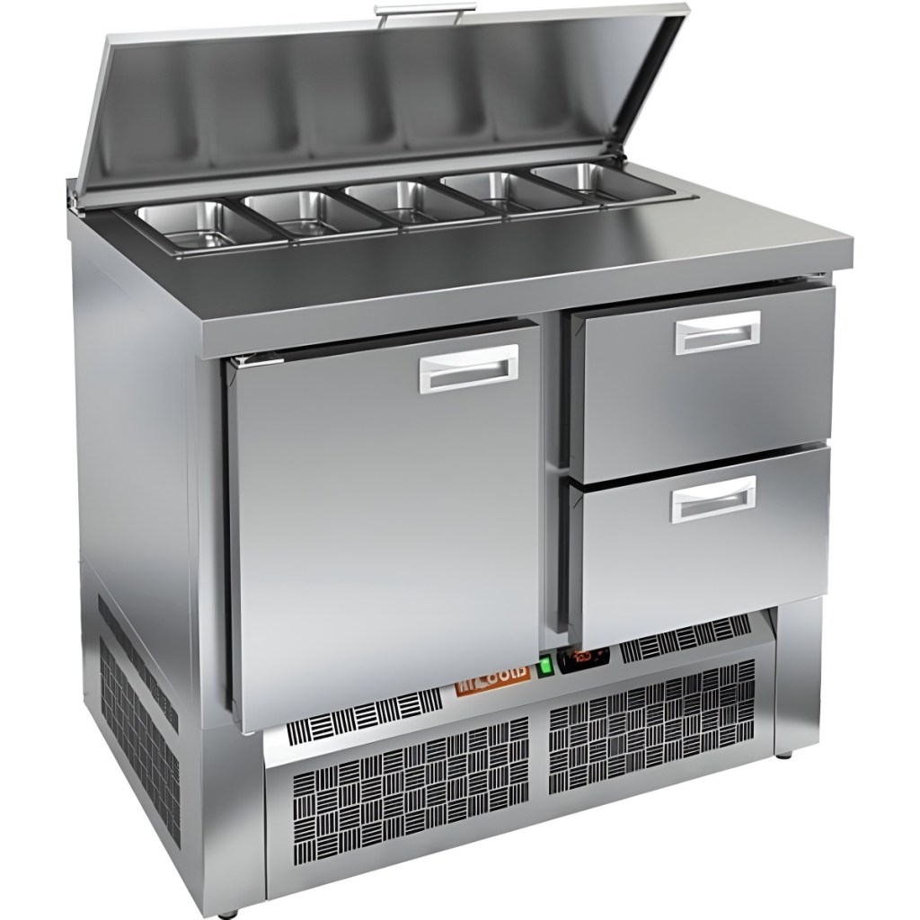 Модель сочетает в себе прочную рабочую поверхность и охлаждаемый внутренний объем, что упрощает процесс приготовления: все необходимые ингредиенты всегда под рукой. Корпус и столешница изготовлены из нержавеющей стали, устойчивой к воздействию влаги, механическим повреждениям и легко поддающейся очистке. Металлическая крышка защищает продукты от загрязнений и сохраняет их свежесть.