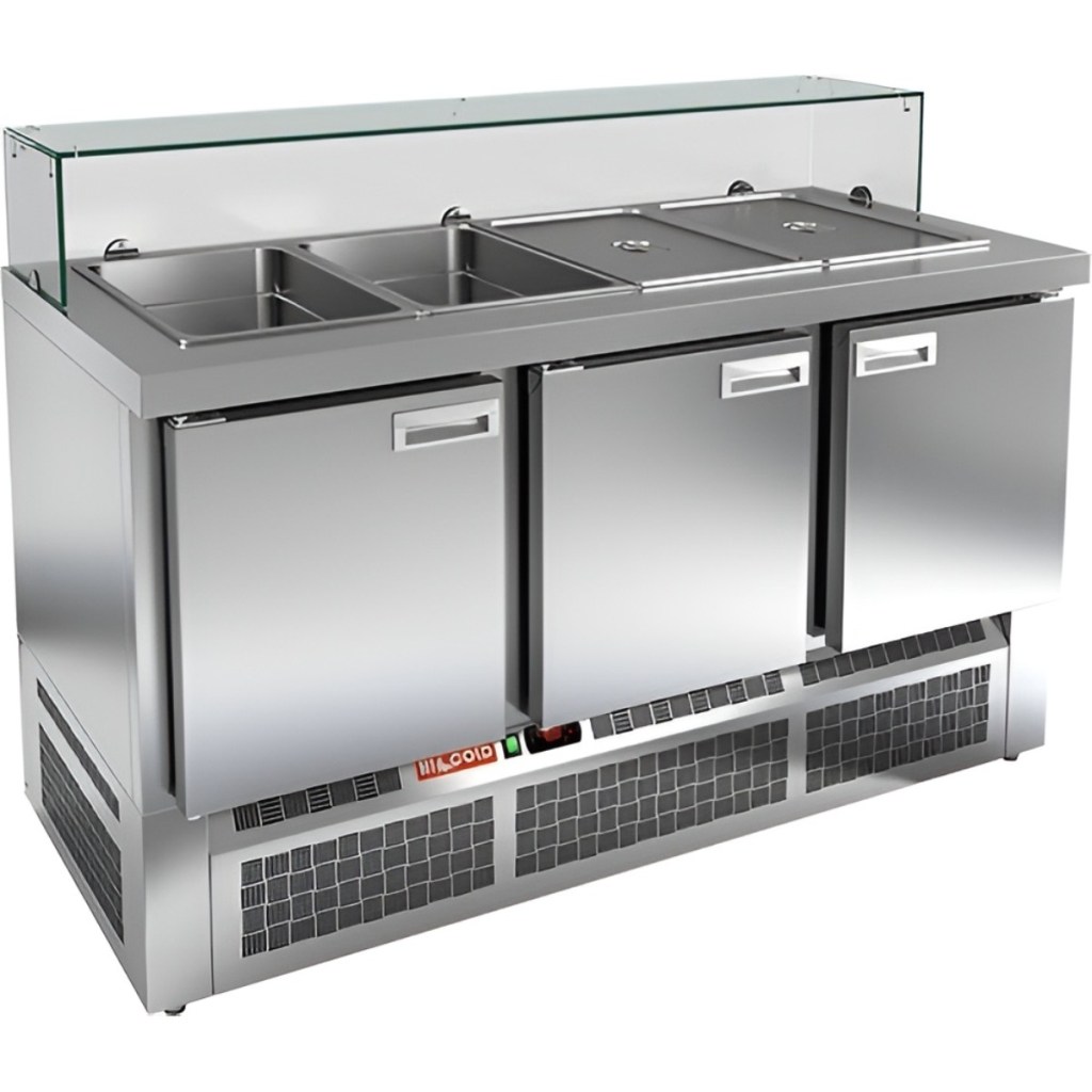 Каталог оборудования Холодильное оборудованиеСтолы охлаждаемыеСтолы холодильные для салатовСтол холодильный для салатов HiCold SLE3-111GN низкое стекло Стол холодильный для салатов HiCold SLE3-111GN низкое стекло Код товара: 062-002 Поделиться: WhatsAppTelegram СравнитьДобавить в КПВ избранное 0 156 951 ₽ В корзину 0 шт Под заказСамовывоз сегодня бесплатно Взять в кредит Купить в лизинг Получить консультацию в WhatsApp Описание Характеристики Отзывы 0 Инструкции 2 Стол холодильный для салатов HiCold SLE3-111GN предназначен для кратковременного хранения и охлаждения ингредиентов, используемых при приготовлении салатов, закусок, сэндвичей и других блюд. Он широко применяется на предприятиях общественного питания и торговли. Благодаря совмещению охлаждаемого объема и рабочей поверхности, модель обеспечивает быстрый доступ ко всем необходимым продуктам. Корпус и столешница изготовлены из прочной и гигиеничной нержавеющей стали, устойчивой к коррозии и интенсивной эксплуатации. Особенности модели: Электронная панель управления — для точной настройки температуры Три вместительные полки формата GN 1/1 — для хранения большого объёма продуктов Вместимость гастроемкостей в салат-баре — 4 шт. Автоматические доводчики дверей с фиксацией открытого положения Магнитные уплотнители — легко заменяются и обеспечивают плотное прилегание Открытая агрегатная часть — для удобного технического обслуживания Регулируемые ножки — позволяют компенсировать неровности пола Глубина гастроемкостей — до 100 мм Толщина столешницы — 50 мм Высота борта — 50 мм Теплоизоляция корпуса — 50 мм Hicold SLE3-111GN — надёжный и удобный в эксплуатации салатный стол, который обеспечит оптимальные условия хранения ингредиентов и повысит эффективность работы кухни. Он подойдёт для любого формата заведений общественного питания, где требуется быстрый доступ к охлаждённым продуктам.Изображение товара, представленного на фото, может отличаться от его фактического вида. Показать все Габаритные размеры1485×700×1055 ммДиапазон рабочей температурыот +2 до +10 °CРасположение агрегатаБоковое Материал столешницыНержавеющая Тип столаС дверьми Тип двериГлухая Объём375 лКоличество дверей3 штТип гастроемкостейGN 1/1 Размер полки530х325 (GN 1/1) ммНапряжение220 ВМощность0,22 кВтТип охлажденияДинамическое Тип оттайкиАвтоматическая СтолешницаСбортом Вес нетто115 кгВес брутто135 кгБрендHicold Оставить отзыв Еще никто не оставил отзыв на этот товар Паспорт на HICOLD SLE3-111GN.pdfДекларация о соответствии.pdf Ранее просмотрено В наличии 70 017 ₽ Шкаф холодильный TEFCOLD FSC100 с креплением к стене