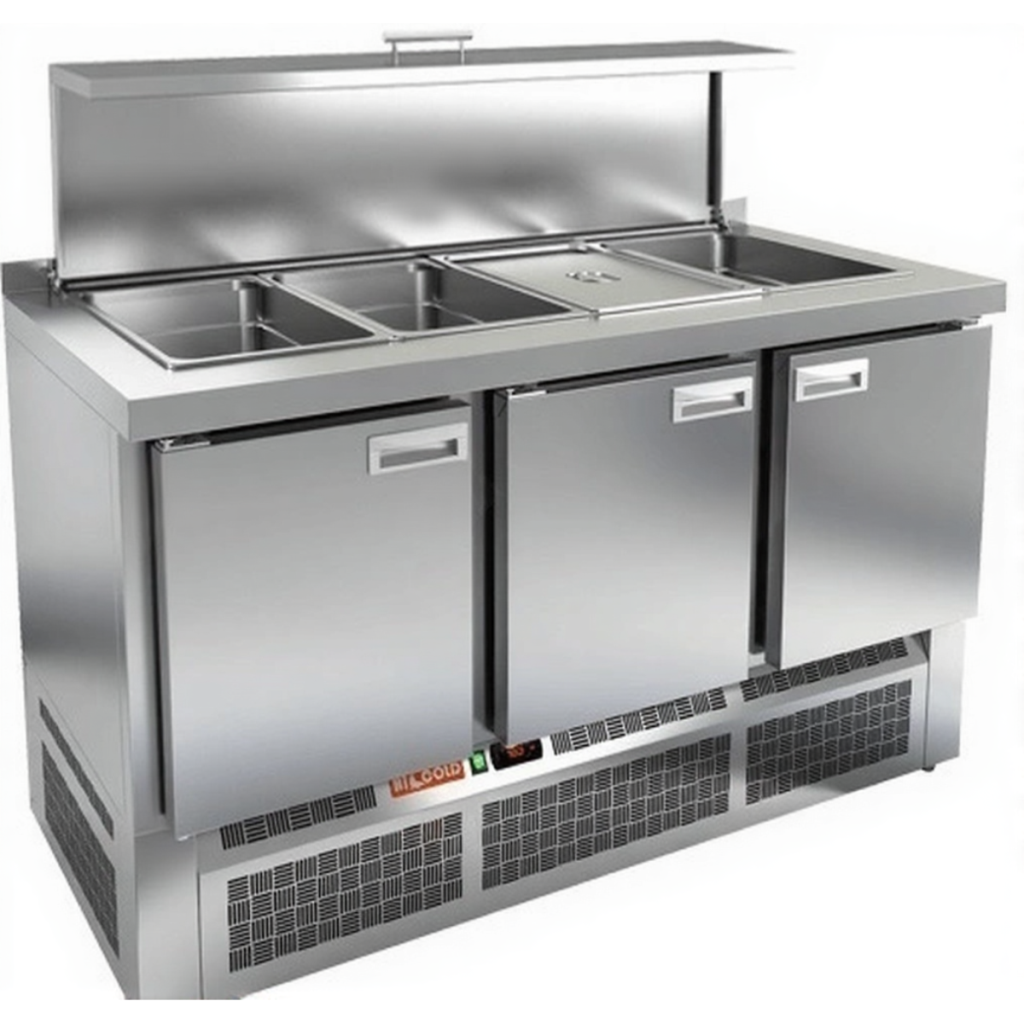 Стол холодильный для салатов HiCold SLE3-111GN с крышкой предназначен для кратковременного хранения и охлаждения ингредиентов, используемых при приготовлении салатов, закусок, сэндвичей и других блюд. Он широко применяется на предприятиях общественного питания и торговли.