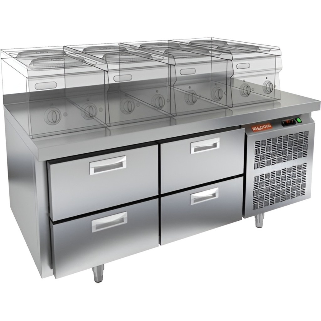 Каталог оборудования Холодильное оборудованиеСтолы охлаждаемыеСтолы холодильные под тепловое оборудованиеСтол охлаждаемый HiCold SN 22/TN LT О под тепловое оборудование Стол охлаждаемый HiCold SN 22/TN LT О под тепловое оборудование Код товара: 065-539 Поделиться: WhatsAppTelegram СравнитьДобавить в КПВ избранное 0 172 162 ₽ В корзину 0 шт Под заказСамовывоз сегодня бесплатно Взять в кредит Купить в лизинг Получить консультацию в WhatsApp Описание Характеристики Отзывы 0 Инструкции 2 Стол охлаждаемый HiCold SN 22/TN LT О под тепловое оборудование предназначен для обработки ингредиентов и временного хранения скоропортящихся продуктов и напитков на предприятиях общественного питания и торговли. Устройство совмещает функции рабочей поверхности и холодильной камеры. Столешница рассчитана на установку теплового оборудования: под рабочей поверхностью встроен ДСП-лист, который укрепляет конструкцию и препятствует проникновению тепла внутрь. Такое решение обеспечивает дополнительную жесткость, позволяет рационально использовать рабочее пространство и повышает эффективность работы на кухне. Внимание! На фото показан стол с бортом. Данная модель поставляется без борта. Особенности: 4 выдвижных ящика — обеспечивают удобный доступ к продуктам и инвентарю Автоматические доводчики дверей с фиксатором открытого положения повышают эргономику и способствуют сохранению холода. Легкозаменяемые магнитные уплотнители обеспечивают плотное прилегание дверей и лёгкость в обслуживании. Открытая агрегатная часть упрощает доступ к компрессору при техническом обслуживании. Регулируемые по высоте ножки позволяют установить стол на неровной поверхности. Столешница без борта, толщина 50 мм — увеличенная рабочая площадь, устойчивая к нагрузкам и механическому воздействию. Толщина теплоизоляции — 50 мм способствует энергоэффективности и стабильному температурному режиму. HiCold SN 22/TN LT О — это надёжное и удобное оборудование, сочетающее охлаждение и рабочее пространство. Благодаря продуманной конструкции и совместимости с гастроемкостями GN 1/1, стол станет практичным решением для кухни любого профессионального уровня.Изображение товара, представленного на фото, может отличаться от его фактического вида. Показать все Габаритные размеры1390×600×675 ммДиапазон рабочей температурыот -2 до +10 °CМатериал столешницыНержавеющая Расположение агрегатаБоковое Объём220 лТип столаС ящиками Количество ящиков4 штРазмер полки530×325 ммНапряжение220 ВМощность0,22 кВтТип охлажденияДинамический Тип оттайкиАвтоматическая СтолешницаБез борта Габариты в упаковке1550×750×850 ммВес нетто125 кгВес брутто147 кгБрендHicold Оставить отзыв Еще никто не оставил отзыв на этот товар Паспорт на HICOLD SN 22TN LT О.pdfДекларация о соответствии.pdf Похожие товары Перейти в каталог В наличии 77 661 ₽ Стол холодильный среднетемпературный HiCold GN 11/TN W Под заказ 125 670 ₽ Стол холодильный среднетемпературный Abat СХС-70-01 с бортом (дверь, дверь) С этим товаром покупают В наличии 201 690 ₽ Шкаф морозильный Полюс Carboma F1400 В наличии 195 030 ₽ Плита индукционная Аbat КИП-47Н