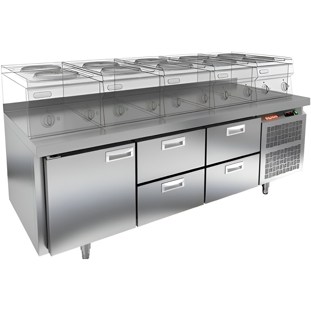 Каталог оборудования Холодильное оборудованиеСтолы охлаждаемыеСтолы холодильные под тепловое оборудованиеСтол охлаждаемый HiCold SN 222/TN LT под тепловое оборудование Стол охлаждаемый HiCold SN 222/TN LT под тепловое оборудование Код товара: 065-548 Поделиться: WhatsAppTelegram СравнитьДобавить в КПВ избранное 0 223 642 ₽ В корзину 0 шт Под заказСамовывоз сегодня бесплатно Взять в кредит Купить в лизинг Получить консультацию в WhatsApp Описание Характеристики Отзывы 0 Инструкции 2 Стол охлаждаемый HiCold SN 222/TN LT SH под тепловое оборудование предназначен для обработки ингредиентов и временного хранения скоропортящихся продуктов и напитков на предприятиях общественного питания и торговли. Устройство совмещает функции рабочей поверхности и холодильной камеры. Столешница рассчитана на установку теплового оборудования: под рабочей поверхностью встроен ДСП-лист, который укрепляет конструкцию и препятствует проникновению тепла внутрь. Такое решение обеспечивает дополнительную жесткость, позволяет рационально использовать рабочее пространство и повышает эффективность работы на кухне. Особенности: 6 выдвижных ящика — обеспечивают удобный доступ к продуктам и инвентарю Автоматические доводчики дверей с фиксатором открытого положения повышают эргономику и способствуют сохранению холода. Легкозаменяемые магнитные уплотнители обеспечивают плотное прилегание дверей и лёгкость в обслуживании. Открытая агрегатная часть упрощает доступ к компрессору при техническом обслуживании. Регулируемые по высоте низкие ножки — удобная установка и устойчивость стола даже на неровной поверхности. Толщина столешницы — 50 мм обеспечивает прочность рабочей поверхности. Высота борта — 50 мм предотвращает падение продуктов и инвентаря. Толщина теплоизоляции — 50 мм способствует энергоэффективности и стабильному температурному режиму. HiCold SN 222/TN LT SH — это надёжное и удобное оборудование, сочетающее охлаждение и рабочее пространство. Благодаря продуманной конструкции и совместимости с гастроемкостями GN 1/1, стол станет практичным решением для кухни любого профессионального уровня.Изображение товара, представленного на фото, может отличаться от его фактического вида. Показать все Габаритные размеры1835×600×675 ммДиапазон рабочей температурыот -2 до +10 °CМатериал столешницыНержавеющая Расположение агрегатаБоковое Объём320 лТип столаС ящиками Тип двериГлухая Количество ящиков6 штРазмер полки430×325 ммНапряжение220 ВМощность0,5 кВтТип охлажденияДинамический Тип оттайкиАвтоматическая СтолешницаС бортом Габариты в упаковке2380×740×970 ммВес нетто115 кгВес брутто155 кгБрендHicold Оставить отзыв Еще никто не оставил отзыв на этот товар Паспорт на HICOLD SN 222/TN LT SH.pdfДекларация о соответствии.pdf Похожие товары Перейти в каталог В наличии 128 777 ₽ Стол морозильный Cooleq GN3200BT с бортом Под заказ 166 404 ₽ Стол морозильный Abat СХН-70-02 без борта (дверь, дверь, дверь) С этим товаром покупают В наличии 140 675 ₽ Шкаф холодильный универсальный Polair CV 110-S Под заказ 76 010 ₽ Газовый лавовый гриль Abat ГЛК-40Н Ранее просмотрено Под заказ 104 841 ₽ Стол морозильный HiCold GN 1/BT LT под тепловое оборудование Под заказ 224 092 ₽ Стол охлаждаемый HiCold GN 222/TN LT O под тепловое оборудование НовинкаПод заказ 177 120 ₽ Морозильный шкаф Briskly 7 Frost (RAL 7024) Серый