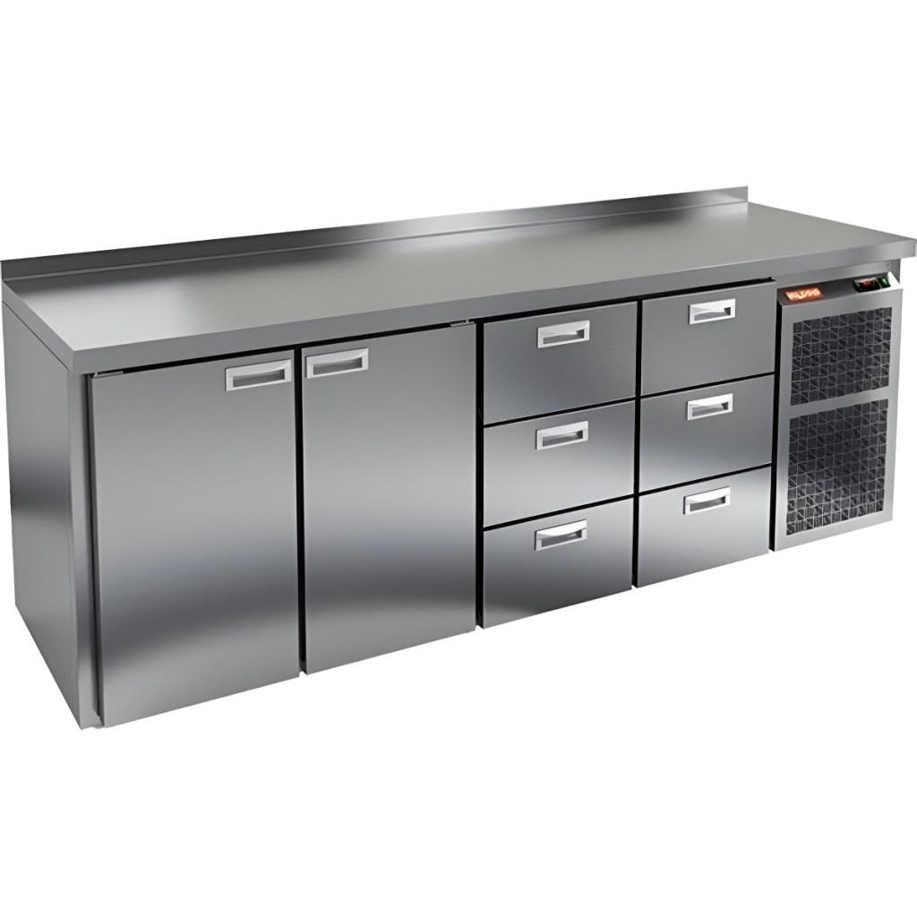 Каталог оборудования Холодильное оборудованиеСтолы охлаждаемыеСтолы холодильные среднетемпературныеСтол холодильный среднетемпературный HiCold BN 1133 BR2 TN Стол холодильный среднетемпературный HiCold BN 1133 BR2 TN Код товара: 062-319 Поделиться: WhatsAppTelegram СравнитьДобавить в КПВ избранное 0 275 031 ₽ В корзину 0 шт В наличииСамовывоз сегодня бесплатно Взять в кредит Купить в лизинг Получить консультацию в WhatsApp Описание Характеристики Отзывы 0 Стол холодильный среднетемпературный HiCold BN 1133 BR2 TN — это многофункциональное профессиональное оборудование, предназначенное для предприятий общественного питания и торговли. Он обеспечивает удобную поверхность для раскатки теста и подготовки продуктов, а также выполняет функцию охлаждаемого шкафа для кратковременного хранения скоропортящихся ингредиентов и напитков. Устройство оснащено удобной электронной панелью управления и выполнено из нержавеющей стали, что гарантирует долговечность и простоту в уходе. Комплектация: 2 полки размером 330×325 мм. Особенности модели: Надёжный компрессор от мирового производителя — стабильная и эффективная работа. Принудительная вентиляция — обеспечивает равномерное распределение холода во всём объёме камеры. Цельнозаливной корпус с теплоизоляцией 50 мм — сводит к минимуму потери холода, придаёт конструкции прочность. Автоматические дверные доводчики с фиксатором — для комфортного и безопасного использования. Магнитные уплотнители, которые легко заменить при необходимости — сохраняют герметичность. Регулируемые по высоте ножки — удобная установка на любой поверхности. Упрощённый доступ к агрегату — быстрое техническое обслуживание без лишних усилий. Толщина столешницы — 50 мм, высота борта — 50 мм — прочная и безопасная рабочая зона. Поддерживает работу при температуре окружающей среды от +12 до +37 °C. HiCold BN 1133 BR2 TN — это надёжный и функциональный холодильный стол, сочетающий в себе рабочую поверхность и охлаждаемое хранение. Он обеспечивает высокую производительность, удобство в эксплуатации и соответствует требованиям современной профессиональной кухни. Отличный выбор для кафе, ресторанов и пищевых производств.Изображение товара, представленного на фото, может отличаться от его фактического вида. Показать все Габаритные размеры2280×500×850 ммДиапазон рабочей температурыот -2 до +10 °CРасположение агрегатаБоковое Материал столешницыНержавеющая Тип столаС дверьми и ящиками Тип двериГлухая Объём530 лКоличество дверей2 штКоличество полок2 штКоличество ящиков6 штРазмер полки330×325 ммНапряжение220 ВМощность0,48 кВтТип охлажденияДинамический Тип оттайкиАвтоматическая СтолешницаС бортом Вес нетто145 кгВес брутто165 кгБрендHicoldВсе холодильные столы HicoldВсе нержавеющие холодильные столы Все холодильные столы с бортом Оставить отзыв Еще никто не оставил отзыв на этот товар Похожие товары Перейти в каталог Под заказ 79 911 ₽ Стол холодильный среднетемпературный HiCold GN 1/TN W Под заказ 104 947 ₽ Стол холодильный среднетемпературный Abat СХС-70 с бортом (дверь) С этим товаром покупают В наличии 96 390 ₽ Шкаф холодильный Полюс Carboma R560 В наличии 58 095 ₽ Витрина холодильная для ингредиентов HICOLD VRTU 1835 1/3 Ранее просмотрено Под заказ 93 441 ₽ Холодильная витрина МХМ Илеть Cube ВХСн-1,5