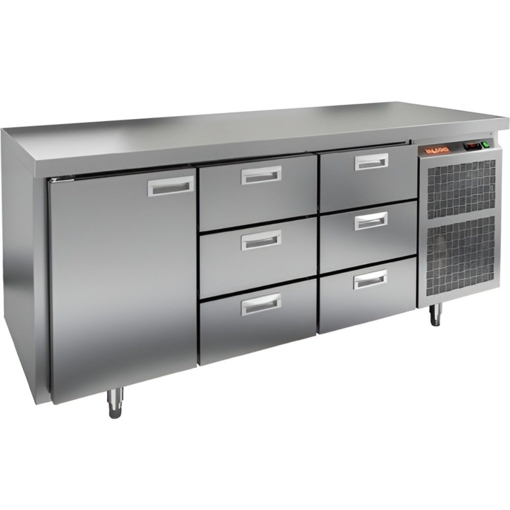 Каталог оборудования Холодильное оборудованиеСтолы охлаждаемыеСтолы морозильные низкотемпературныеСтол морозильный HiCold GN 133/BT O Стол морозильный HiCold GN 133/BT O Код товара: 065-067 Поделиться: WhatsAppTelegram СравнитьДобавить в КПВ избранное 0 266 752 ₽ В корзину 0 шт Под заказСамовывоз сегодня бесплатно Взять в кредит Купить в лизинг Получить консультацию в WhatsApp Описание Характеристики Отзывы 0 Инструкции 2 Стол морозильный HiCold GN133/BT О сочетает в себе удобную рабочую поверхность и вместительную морозильную камеру. Верхняя часть используется для раскатки теста и подготовки ингредиентов, а внутренняя камера предназначена для заморозки и хранения продуктов и полуфабрикатов. Стол оснащен одной глухой дверяью и шестью выдвижными ящиками, что обеспечивает удобный доступ к продуктам и рациональное использование внутреннего пространства. Оборудование идеально подходит для предприятий общественного питания. Особенности: Совместимость с GN-стандартом — полки, направляющие и стойки полностью интегрируются с профессиональным кухонным оборудованием. Прочный цельнозаливной корпус из нержавеющей стали с 50 мм изоляцией обеспечивает высокую герметичность и жесткость конструкции. Столешница без борта для удобной работы с крупными и длинными заготовками. Электронный блок управления с повышенной надежностью и несколькими режимами оттаивания. Вентилятор увеличенной мощности и принудительная вентиляция по всему объему камеры для равномерного и быстрого охлаждения. Интеллектуальная система размораживания и термическое выпаривание конденсата снижают затраты на обслуживание. Экономичный компрессор нового поколения снижает энергопотребление. Облегченный доступ к агрегату упрощает сервисное обслуживание. Двери с доводчиками и ПЭН предотвращают примерзание и обеспечивают плотное закрытие. Регулируемые по высоте ножки для устойчивости на разных поверхностях. Максимальная нагрузка на полку — 50 кг. Высота борта рабочей поверхности — 50 мм. Температура окружающей среды: 12–32 °C. HiCold GN133/BT О — это надежный и функциональный морозильный стол, обеспечивающий удобство работы и эффективное хранение продуктов. Он идеально подходит для интенсивной эксплуатации на профессиональных кухнях ресторанов, кафе и предприятий общественного питания.Изображение товара, представленного на фото, может отличаться от его фактического вида. Показать все Габаритные размеры1835×700×850 ммДиапазон рабочей температурыот -18 до -10 °CРасположение агрегатаБоковое Материал столешницыНержавеющая Тип столаС дверьми и ящиками Тип двериГлухая Объём505 лКоличество дверей1 штКоличество полок1 штКоличество ящиков6 штНапряжение220 ВМощность0,6 кВтТип охлажденияДинамический Тип оттайкиАвтоматическая СтолешницаБзе борта Габариты в упаковке200×845×995 ммВес нетто128 кгВес брутто148 кгБрендHicoldВсе морозильные столы HicoldВсе морозильные столы без бортаВсе морозильные столы с бортом Оставить отзыв Еще никто не оставил отзыв на этот товар Паспорт на HICOLD GN133/BT О.pdfДекларация о соответствии.pdf Похожие товары Перейти в каталог Под заказ 169 732 ₽ Стол морозильный Abat СХН-70-02 без борта (дверь, дверь, дверь) Под заказ 156 861 ₽ Стол морозильный HiCold GN 111/BT W Ранее просмотрено Под заказ 206 451 ₽ Стол морозильный HiCold GN 1111/BT О