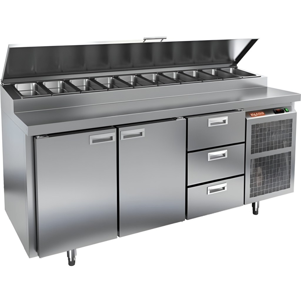 Каталог оборудования Холодильное оборудованиеСтолы охлаждаемыеСтолы холодильные для пиццыСтол холодильный для пиццы HiCold PZ1-113GN (1/3H) Стол холодильный для пиццы HiCold PZ1-113GN (1/3H) Код товара: 064-692 Поделиться: WhatsAppTelegram СравнитьДобавить в КПВ избранное 0 260 272 ₽ В корзину 0 шт Под заказСамовывоз сегодня бесплатно Взять в кредит Купить в лизинг Получить консультацию в WhatsApp Описание Характеристики Отзывы 0 Инструкции 2 Стол холодильный для пиццы HiCold PZ1-113GN (1/3H) — профессиональное оборудование для ресторанов, кафе и предприятий торговли. Он совмещает рабочую поверхность для раскатки теста и подготовки ингредиентов с охлаждаемым блоком для кратковременного хранения продуктов и напитков. Корпус и столешница выполнены из нержавеющей стали, что гарантирует долговечность и лёгкость ухода. Основные особенности: Динамическая система охлаждения — равномерное распределение холода Автоматическая оттайка — поддержка стабильной работы без наледи Электронная панель управления — точная настройка температуры и режимов 2 вместительные полки формата GN 1/1 3 выдвижных ящика для хранения дополнительных ингредиентов Автоматические доводчики дверей с фиксатором открытого положения — удобство загрузки и выгрузки Легкозаменяемые магнитные уплотнители — поддержание герметичности Открытая агрегатная часть — облегчённый доступ к техническим элементам Регулируемые по высоте ножки — установка по уровню Максимальная глубина гастроёмкостей: 150 мм (крайняя правая — 100 мм) Глубина рабочей поверхности: 324 мм Толщина столешницы и теплоизоляции: 50 мм Вместимость салат-бара: до 10 гастроёмкостей Стол холодильный HiCold PZ1-113GN (1/3H) — функциональный и удобный стол для пиццы и салатов, совмещающий рабочую поверхность, охлаждаемый блок, полки и ящики для хранения. Разная глубина гастроёмкостей и продуманная организация рабочего пространства делают его оптимальным решением для профессиональной кухни.Изображение товара, представленного на фото, может отличаться от его фактического вида. Показать все Габаритные размеры1835×700×1000 ммДиапазон рабочей температурыот +2 до +10 °CРасположение агрегатаБоковое Материал столешницыНержавеющая Тип столаС дверьми и ящиками Тип двериГлухая Объём505 лТип гастроемкостейGN 1/3 Количество дверей2 штКоличество ящиков3 штРазмер полки530×325 ммНапряжение220 ВМощность0,5 кВтТип охлажденияДинамическое Тип оттайкиАвтоматическая Габариты в упаковке2000×850×1140 ммВес нетто172 кгВес брутто200 кгБрендHicoldВсе холодильные столы для пиццы HicoldВсе нержавеющие холодильные столы для пиццы Оставить отзыв Еще никто не оставил отзыв на этот товар Паспорт на HICOLD PZ1-113GN.pdfДекларация о соответствии.pdf Ранее просмотрено Под заказ 206 541 ₽ Стол холодильный для пиццы HiCold PZ1-11GN (1/3) М Под заказ 250 822 ₽ Стол холодильный для пиццы HiCold PZE1-1112/GN (1/3)