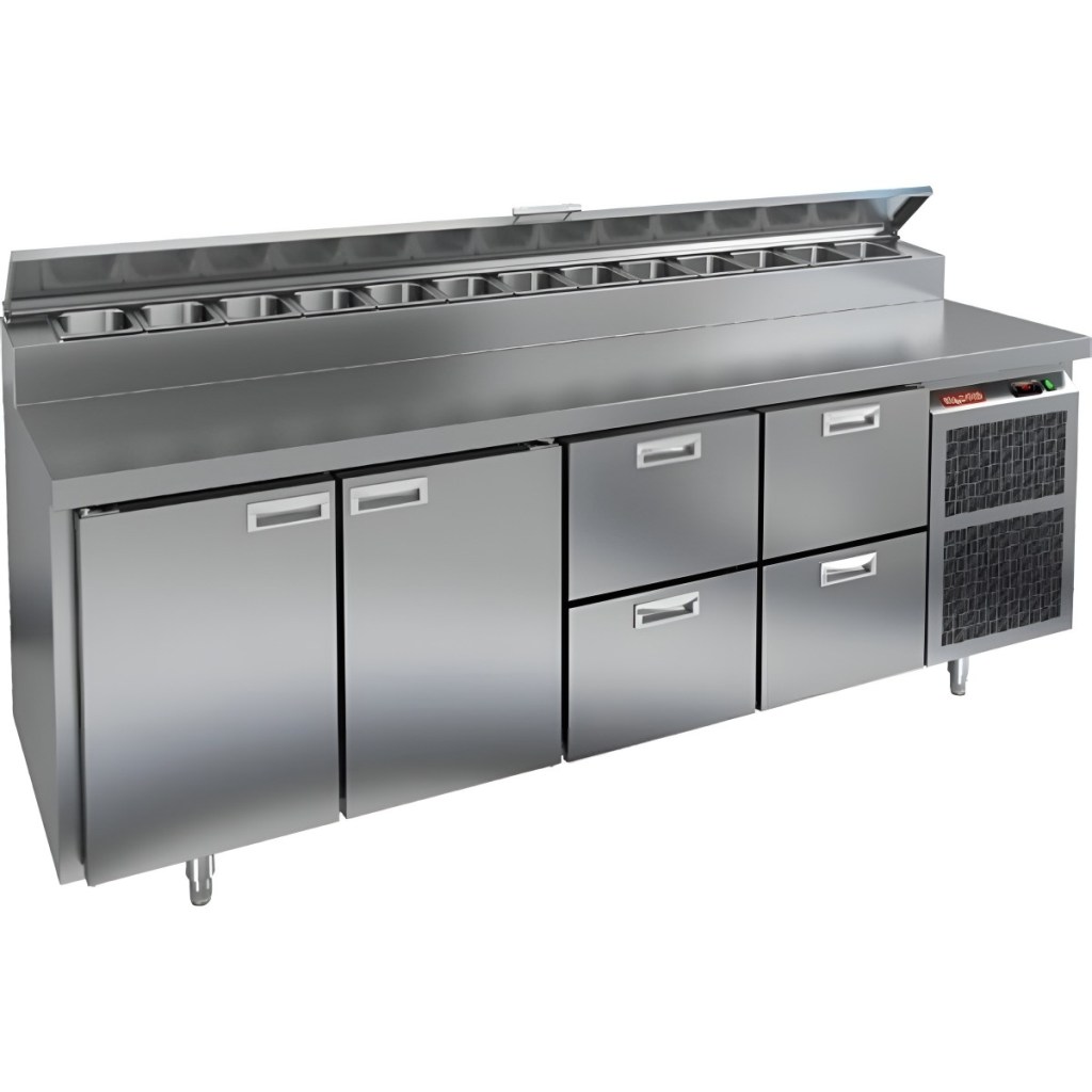 Каталог оборудования Холодильное оборудованиеСтолы охлаждаемыеСтолы холодильные для пиццыСтол холодильный для пиццы HiCold PZ2-1122GN (1/6) Стол холодильный для пиццы HiCold PZ2-1122GN (1/6) Код товара: 064-749 Поделиться: WhatsAppTelegram СравнитьДобавить в КПВ избранное 0 311 842 ₽ В корзину 0 шт Под заказСамовывоз сегодня бесплатно Взять в кредит Купить в лизинг Получить консультацию в WhatsApp Описание Характеристики Отзывы 0 Стол холодильный для пиццы HiCold PZ2-1122GN (1/6) предназначен для кухонь и предприятий общественного питания. Он используется для раскатки теста, подготовки ингредиентов для пиццы, салатов и других блюд, а также для охлаждения и кратковременного хранения скоропортящихся продуктов. Модель совмещает нержавеющую рабочую поверхность и охлаждаемый отсек с 2 дверями и 4 ящиками, обеспечивая удобный доступ к ингредиентам и эффективное хранение. Особенности: Динамическая система охлаждения для равномерного поддержания температуры Автоматическая оттайка для удобного обслуживания Электронная панель управления для точной настройки параметров Вместительная внутренняя полка формата GN 1/1 (размер 530×325 мм) 2 двери и 4 вместительных ящика для хранения ингредиентов Автоматические доводчики дверей с фиксатором открытого положения Легкозаменяемые магнитные уплотнители для герметичности Открытая агрегатная часть для легкого доступа к компонентам Регулируемые по высоте ножки для устойчивости Нержавеющая столешница глубиной 486 мм и толщиной 50 мм — устойчива к коррозии, легко моется и гигиенична Толщина теплоизоляции: 50 мм Максимальная глубина гастроемкостей: 100 мм Вместимость салат-бара: 13 гастроемкости Стол холодильный для пиццы HiCold PZ2-1122GN (1/6) — это надежный и функциональный стол для пиццы. Он объединяет рабочую поверхность и охлаждаемый отсек, упрощает хранение и подготовку ингредиентов, обеспечивает удобство работы повара и соответствует стандартам профессиональной кухни. Изображение товара, представленного на фото, может отличаться от его фактического вида. Показать все Габаритные размеры2280×700×1000 ммДиапазон рабочей температурыот +2 до +10 °CРасположение агрегатаБоковое Материал столешницыНержавеющая Тип столаС дверьми и ящиками Тип двериГлухая Объём570 лТип гастроемкостейGN 1/6 Количество дверей2 штКоличество ящиков4 штРазмер полки530×325 ммНапряжение220 ВМощность0,51 кВтТип охлажденияДинамическое Тип оттайкиАвтоматическая Габариты в упаковке2420×850×1080 ммВес нетто208 кгВес брутто240 кгБрендHicoldВсе холодильные столы для пиццы HicoldВсе нержавеющие холодильные столы для пиццы Оставить отзыв Еще никто не оставил отзыв на этот товар Ранее просмотрено В наличии 186 561 ₽ Стол холодильный для пиццы HiCold PZE1-111GN (1/3) В наличии 250 642 ₽ Стол холодильный для пиццы HiCold PZ2-1111GN (1/6) Под заказ 245 242 ₽ Стол холодильный для пиццы HiCold PZ1-22GN (1/3) Под заказ 220 221 ₽ Стол холодильный для пиццы HiCold PZE1-1111GN (1/3) Под заказ 342 442 ₽ Стол холодильный для пиццы HiCold PZ2-1133GN (1/6) Под заказ 158 391 ₽ Стол холодильный для пиццы HiCold PZE1-11GN (1/3)