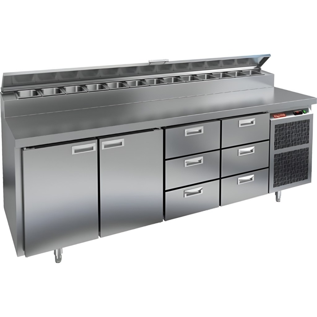 Каталог оборудования Холодильное оборудованиеСтолы охлаждаемыеСтолы холодильные для пиццыСтол холодильный для пиццы HiCold PZ2-1133GN (1/6) Стол холодильный для пиццы HiCold PZ2-1133GN (1/6) Код товара: 064-759 Поделиться: WhatsAppTelegram СравнитьДобавить в КПВ избранное 0 342 442 ₽ В корзину 0 шт Под заказСамовывоз сегодня бесплатно Взять в кредит Купить в лизинг Получить консультацию в WhatsApp Описание Характеристики Отзывы 0 Стол холодильный для пиццы HiCold PZ2-1133GN (1/6) предназначен для кухонь и предприятий общественного питания. Он используется для раскатки теста, подготовки ингредиентов для пиццы, салатов и других блюд, а также для охлаждения и кратковременного хранения скоропортящихся продуктов. Модель совмещает нержавеющую рабочую поверхность и охлаждаемый отсек с 2 дверьми и 6 ящиками, обеспечивая удобный доступ к ингредиентам и эффективное хранение. Особенности: Динамическая система охлаждения для равномерного поддержания температуры Автоматическая оттайка для удобного обслуживания Электронная панель управления для точной настройки параметров Вместительная внутренняя полка формата GN 1/1 (размер 530×325 мм) 2 двери и 6 вместительных ящика для хранения ингредиентов Автоматические доводчики дверей с фиксатором открытого положения Легкозаменяемые магнитные уплотнители для герметичности Открытая агрегатная часть для легкого доступа к компонентам Регулируемые по высоте ножки для устойчивости Нержавеющая столешница глубиной 486 мм и толщиной 50 мм — устойчива к коррозии, легко моется и гигиенична Толщина теплоизоляции: 50 мм Максимальная глубина гастроемкостей: 100 мм Вместимость салат-бара: 13 гастроемкости Стол холодильный HiCold PZ2-1133GN (1/6) — это надежный и функциональный стол для пиццы. Он объединяет рабочую поверхность и охлаждаемый отсек, упрощает хранение и подготовку ингредиентов, обеспечивает удобство работы повара и соответствует стандартам профессиональной кухни. Изображение товара, представленного на фото, может отличаться от его фактического вида. Показать все Габаритные размеры2280×700×1000 ммДиапазон рабочей температурыот +2 до +10 °CРасположение агрегатаБоковое Материал столешницыНержавеющая Тип столаС дверьми и ящиками Тип двериГлухая Объём660 лТип гастроемкостейGN 1/6 Количество дверей2 штКоличество ящиков6 штРазмер полки530×325 ммНапряжение220 ВМощность0,5 кВтТип охлажденияДинамическое Тип оттайкиАвтоматическая Габариты в упаковке2420×850×1080 ммВес нетто208 кгВес брутто240 кгБрендHicoldВсе холодильные столы для пиццы HicoldВсе нержавеющие холодильные столы для пиццы Оставить отзыв Еще никто не оставил отзыв на этот товар Ранее просмотрено Под заказ 158 391 ₽ Стол холодильный для пиццы HiCold PZE1-11GN (1/3)