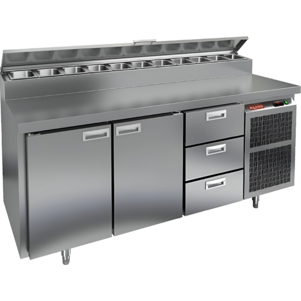 Каталог оборудования Холодильное оборудованиеСтолы охлаждаемыеСтолы холодильные для пиццыСтол холодильный для пиццы HiCold PZ2-113GN (1/6) Стол холодильный для пиццы HiCold PZ2-113GN (1/6) Код товара: 064-761 Поделиться: WhatsAppTelegram СравнитьДобавить в КПВ избранное 0 260 272 ₽ В корзину 0 шт Под заказСамовывоз сегодня бесплатно Взять в кредит Купить в лизинг Получить консультацию в WhatsApp Описание Характеристики Отзывы 0 Инструкции 2 Стол холодильный для пиццы HiCold PZ2-113GN (1/6) предназначен для кухонь и предприятий общественного питания. Он используется для раскатки теста, подготовки ингредиентов для пиццы, салатов и других блюд, а также для охлаждения и кратковременного хранения скоропортящихся продуктов. Модель совмещает нержавеющую рабочую поверхность и охлаждаемый отсек с 2 дверьми и 3 ящиками, обеспечивая удобный доступ к ингредиентам и эффективное хранение. Особенности: Динамическая система охлаждения для равномерного поддержания температуры Автоматическая оттайка для удобного обслуживания Электронная панель управления для точной настройки параметров Вместительная внутренняя полка формата GN 1/1 (размер 530×325 мм) 2 двери и 3 вместительных ящика для хранения ингредиентов Автоматические доводчики дверей с фиксатором открытого положения Легкозаменяемые магнитные уплотнители для герметичности Открытая агрегатная часть для легкого доступа к компонентам Регулируемые по высоте ножки для устойчивости Нержавеющая столешница глубиной 486 мм и толщиной 50 мм — устойчива к коррозии, легко моется и гигиенична Толщина теплоизоляции: 50 мм Максимальная глубина гастроемкостей: 100 мм Вместимость салат-бара: 11 гастроемкости Стол холодильный HiCold PZ2-113GN (1/6) — это надежный и функциональный стол для пиццы. Он объединяет рабочую поверхность и охлаждаемый отсек, упрощает хранение и подготовку ингредиентов, обеспечивает удобство работы повара и соответствует стандартам профессиональной кухни. Изображение товара, представленного на фото, может отличаться от его фактического вида. Показать все Габаритные размеры1835×700×1000 ммДиапазон рабочей температурыот +2 до +10 °CРасположение агрегатаБоковое Материал столешницыНержавеющая Тип столаС дверьми и ящиками Тип двериГлухая Объём505 лТип гастроемкостейGN 1/6 Количество дверей2 штКоличество ящиков3 штРазмер полки530×325 ммНапряжение220 ВМощность0,46 кВтТип охлажденияДинамическое Тип оттайкиАвтоматическая Вес нетто172 кгВес брутто210 кгБрендHicoldВсе холодильные столы для пиццы HicoldВсе нержавеющие холодильные столы для пиццы Оставить отзыв Еще никто не оставил отзыв на этот товар Паспорт на HICOLD PZ2-113GN.pdfДекларация о соответствии.pdf Ранее просмотрено Под заказ 260 542 ₽ Стол холодильный для пиццы HiCold PZ1-23GN (1/3) Под заказ 220 221 ₽ Стол холодильный для пиццы HiCold PZE1-1111GN (1/3) Под заказ 342 442 ₽ Стол холодильный для пиццы HiCold PZ2-1133GN (1/6) Под заказ 158 391 ₽ Стол холодильный для пиццы HiCold PZE1-11GN (1/3)