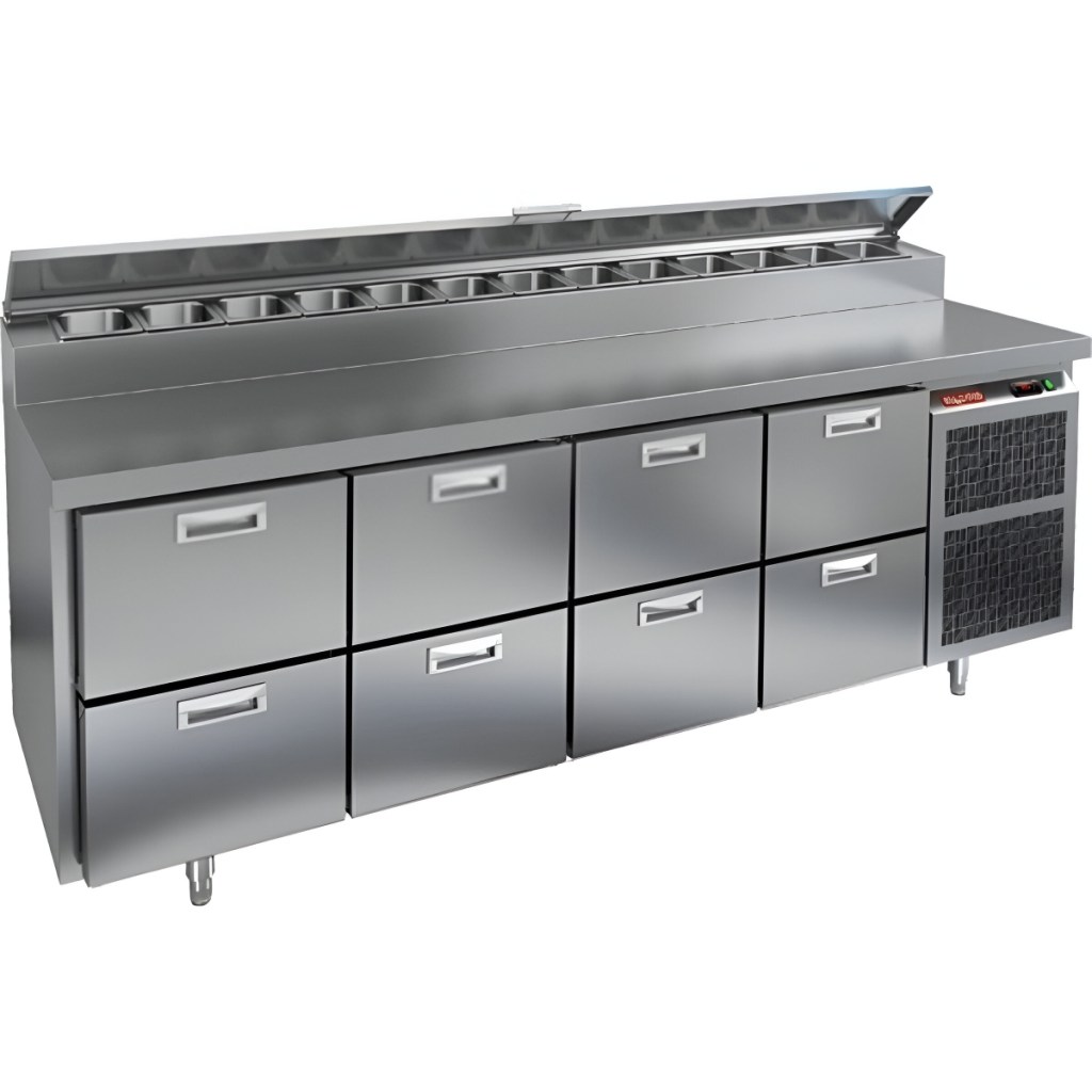 Каталог оборудования Холодильное оборудованиеСтолы охлаждаемыеСтолы холодильные для пиццыСтол холодильный для пиццы HiCold PZ2-2222GN (1/6) Стол холодильный для пиццы HiCold PZ2-2222GN (1/6) Код товара: 064-773 Поделиться: WhatsAppTelegram СравнитьДобавить в КПВ избранное 0 373 042 ₽ В корзину 0 шт Под заказСамовывоз сегодня бесплатно Взять в кредит Купить в лизинг Получить консультацию в WhatsApp Описание Характеристики Отзывы 0 Стол холодильный для пиццы HiCold PZ2-2222GN (1/6) предназначен для кухонь и предприятий общественного питания. Он используется для раскатки теста, подготовки ингредиентов для пиццы, салатов и других блюд, а также для охлаждения и кратковременного хранения скоропортящихся продуктов. Модель совмещает нержавеющую рабочую поверхность и охлаждаемый отсек с 8 выдвижными ящиками, обеспечивая удобный доступ к ингредиентам и эффективное хранение без дверей. Особенности: Динамическая система охлаждения для равномерного поддержания температуры Автоматическая оттайка для удобного обслуживания Электронная панель управления для точной настройки параметров Вместительная внутренняя полка формата GN 1/1 (размер 530×325 мм) 8 выдвижных ящиков для хранения ингредиентов Легкозаменяемые магнитные уплотнители для герметичности Открытая агрегатная часть для легкого доступа к компонентам Регулируемые по высоте ножки для устойчивости Нержавеющая столешница глубиной 486 мм и толщиной 50 мм — устойчива к коррозии, легко моется и гигиенична Толщина теплоизоляции: 50 мм Максимальная глубина гастроемкостей: 100 мм Вместимость салат-бара: 13 гастроемкости Стол холодильный HiCold PZ2-2222GN (1/6) — это надежное и удобное решение для профессиональной кухни. Он обеспечивает легкий доступ к ингредиентам, упрощает хранение и подготовку продуктов и полностью соответствует стандартам предприятий общественного питания.Изображение товара, представленного на фото, может отличаться от его фактического вида. Показать все Габаритные размеры2280×700×1000 ммДиапазон рабочей температурыот +2 до +10 °CРасположение агрегатаБоковое Материал столешницыНержавеющая Тип столаС ящиками Объём660 лТип гастроемкостейGN 1/6 Количество ящиков8 штНапряжение220 ВМощность0,5 кВтТип охлажденияДинамическое Тип оттайкиАвтоматическая Габариты в упаковке2420×850×1080 ммВес нетто208 кгВес брутто240 кгБрендHicoldВсе холодильные столы для пиццы HicoldВсе нержавеющие холодильные столы для пиццы Оставить отзыв Еще никто не оставил отзыв на этот товар Ранее просмотрено Под заказ 278 361 ₽ Стол холодильный для пиццы HiCold PZE1-222GN (1/3) Под заказ 247 761 ₽ Стол холодильный для пиццы HiCold PZE2-221/GN (1/6H) Под заказ 244 971 ₽ Стол холодильный для пиццы HiCold PZ2-211/GN (1/6H) Под заказ 342 622 ₽ Стол холодильный для пиццы HiCold PZE1-2222GN (1/3)