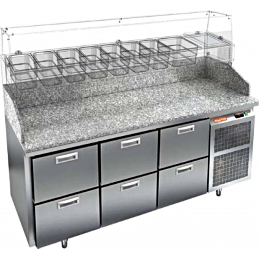 Каталог оборудования Холодильное оборудованиеСтолы охлаждаемыеСтолы холодильные для пиццыСтол холодильный для пиццы HiCold PZ3-222/GN камень Стол холодильный для пиццы HiCold PZ3-222/GN камень Код товара: 065-011 Поделиться: WhatsAppTelegram СравнитьДобавить в КПВ избранное 0 358 552 ₽ В корзину 0 шт Под заказСамовывоз сегодня бесплатно Взять в кредит Купить в лизинг Получить консультацию в WhatsApp Описание Характеристики Отзывы 0 Стол холодильный для пиццы HiCold PZ3-222/GN камень предназначен для использования в пиццериях, кафе, магазинах и ресторанах. Он идеально подходит для раскатки теста, подготовки ингредиентов и кратковременного хранения скоропортящихся продуктов. Витрина приобретается отдельно. Стол сочетает корпус из нержавеющей стали и гранитную столешницу, которая устойчива к механическим и температурным нагрузкам и удобна в работе с тестом. Такая конструкция обеспечивает долговечность, гигиеничность и простоту ухода. Особенности модели: Охлаждение: динамическое — равномерное поддержание температуры Оттайка: автоматическая — удобство и экономия времени Панель управления: электронная — точная настройка температуры Ножки: регулируемые по высоте — устойчивость на неровной поверхности Ящики: 6 выдвижных ящика — удобное хранение ингредиентов Уплотнители: легкозаменяемые магнитные — герметичность и простота обслуживания Толщина теплоизоляции: 50 мм — сохранение холода и энергоэффективность Рабочая поверхность: глубина 680 мм — удобство работы HiCold PZE3-222/GN камень— это надёжный и функциональный холодильный стол для пиццы, который сочетает прочность, эргономику и эффективное охлаждение. Благодаря гранитной столешнице, корпусу из нержавеющей стали, двум глухим дверям и двум выдвижным ящикам он станет универсальным решением для профессиональной кухни. Изображение товара, представленного на фото, может отличаться от его фактического вида. Показать все Габаритные размеры1835×700×1050 ммДиапазон рабочей температурыот +2 до +10 °CРасположение агрегатаБоковое Материал столешницыГранитная Тип столаС ящиками Объём505 лКоличество ящиков6 штРазмер полки530×325 ммНапряжение220 ВМощность0,5 кВтТип охлажденияДинамическое Тип оттайкиАвтоматическая Габариты в упаковке2000×850×1180 ммВес нетто172 кгВес брутто192 кгБрендHicoldВсе холодильные столы для пиццы HicoldВсе нержавеющие холодильные столы для пиццы Оставить отзыв Еще никто не оставил отзыв на этот товар Ранее просмотрено Под заказ 164 422 ₽ Стол холодильный для пиццы HiCold PZ2-1GN (1/6) камень Цена по запросу Витрина морозильная Иней LIDA-LOTUS М 2,5