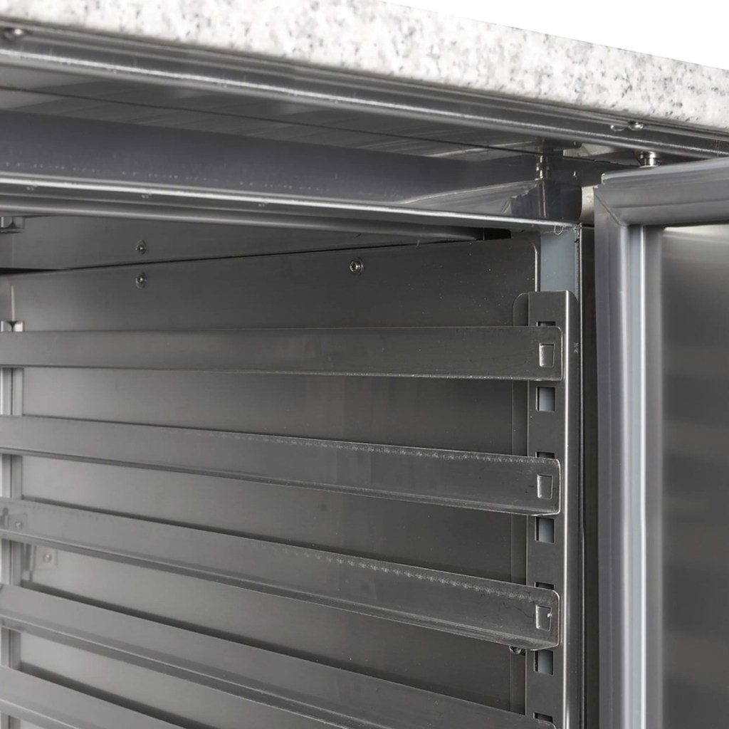Каталог оборудования Холодильное оборудованиеСтолы охлаждаемыеСтолы холодильные для пиццыСтол холодильный для пиццы TEFCOLD PT1365 + VK33-140 Стол холодильный для пиццы TEFCOLD PT1365 + VK33-140 Код товара: 010-225 Поделиться: WhatsAppTelegram СравнитьДобавить в КПВ избранное 0 258 953 ₽ В корзину 0 шт Под заказСамовывоз сегодня бесплатно Взять в кредит Купить в лизинг Получить консультацию в WhatsApp Описание Характеристики Отзывы 0 Инструкции 2 Стол для пиццы TEFCOLD PT1365 — профессиональное оборудование, предназначенное для обработки ингредиентов, охлаждения и кратковременного хранения продуктов на предприятиях общественного питания и торговли. Корпус и внутренняя обшивка выполнены из нержавеющей стали AISI 304, обеспечивая долговечность, гигиеничность и простоту ухода. Особенности модели: Динамическое охлаждение — равномерное распределение температуры по всему объёму Автоматическое размораживание — поддержание стабильной работы без образования наледи Электронный термостат и градусник — точное регулирование температуры Хладагент R600a, подзарядка — 0,11 кг Самозакрывающиеся двери — герметичность и сохранение холода 3 полки — удобная организация внутреннего пространства Регулируемые по высоте ножки — устойчивость на неровных поверхностях Климатический класс 4 — работа при температуре окружающей среды до +30 °C Полезный объём: 368 л Внутренние размеры: 1295×515×500 мм Энергопотребление: 3 кВт/сутки Уровень шума: 42 дБ TEFCOLD PT1365 — надёжный и функциональный холодильный стол для профессиональных кухонь, пиццерий и предприятий общественного питания. Модель сочетает удобную рабочую поверхность, вместительное охлаждаемое пространство и современную систему управления температурой, обеспечивая сохранность ингредиентов и комфорт в работе. Изображение товара, представленного на фото, может отличаться от его фактического вида. Показать все Габаритные размеры1365×700×1457 ммДиапазон рабочей температурыот +2 до +10 °CРасположение агрегатаНижнее Материал столешницыГранитная Тип столаС дверьми Тип двериГлухая Общий объем400 лПолезный объем368 лТип гастроемкостейGN1/1 Количество дверей3 штКлиматический класс4 Напряжение220 ВРасход электроэнергии в сутки3,15 кВт/сутТип охлажденияДинамическое Тип оттайкиАвтоматическая ХладагентR600a Уровень шума42 дБГабариты в упаковке1440×770×1510 ммВес нетто210 кгВес брутто235 кгБрендTefcold Оставить отзыв Еще никто не оставил отзыв на этот товар Брошюра на TEFCOLD PT1365-I.pdfИнструкция на TEFCOLD PT1365-I.pdf Похожие товары Перейти в каталог Под заказ 197 749 ₽ Стол холодильный для пиццы TEFCOLD PT930 Под заказ 164 643 ₽ Стол холодильный для пиццы Abat СХС-80-01П 2 двери нерж. Под заказ 324 250 ₽ Стол холодильный для пиццы TEFCOLD PT1200 + VK38-150 С этим товаром покупают Под заказ 201 448 ₽ Шкаф морозильный Abat ШХн-1,4-02 Ранее просмотрено В наличии 69 462 ₽ Витрина холодильная настольная HURAKAN HKN-UPD72