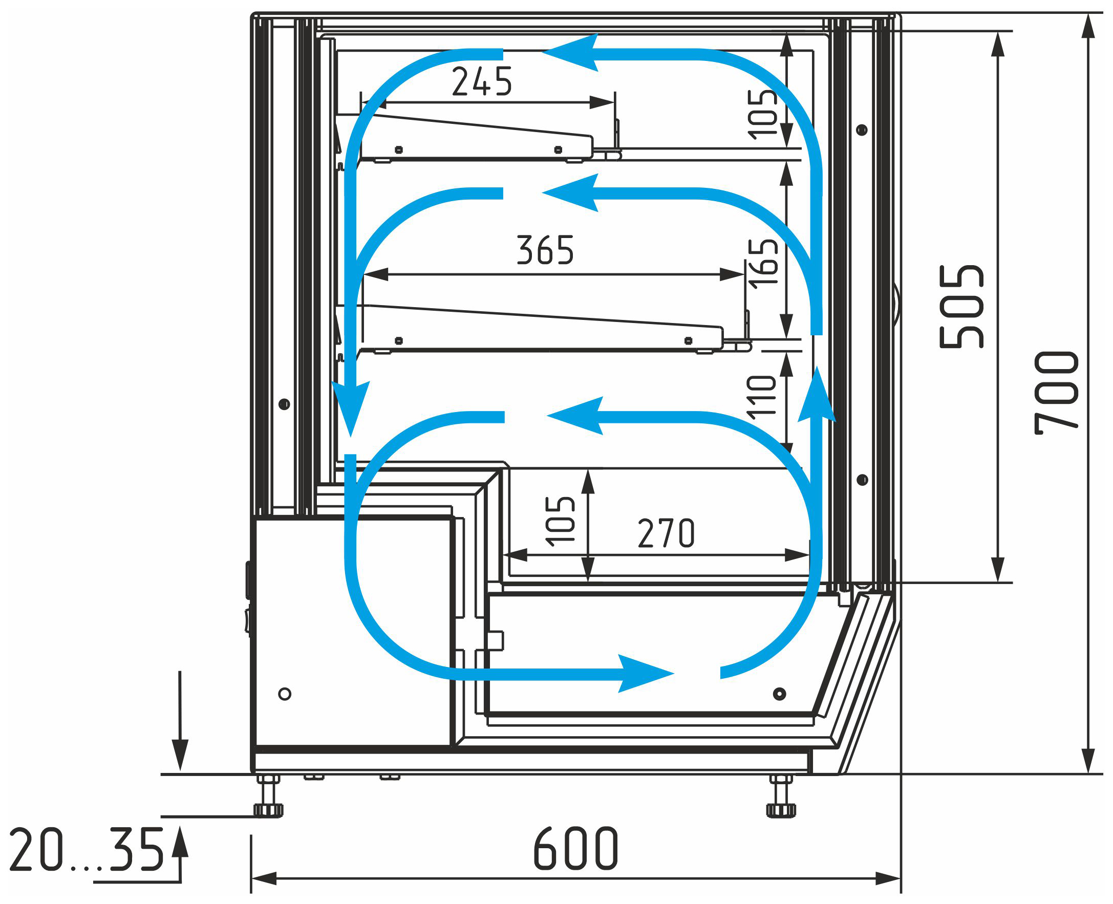Каталог оборудования Холодильное оборудованиеВитрины настольныеВитрина холодильная настольная Carboma AC59 VM 0,9-1 (слайдер) (0430) Витрина холодильная настольная Carboma AC59 VM 0,9-1 (слайдер) (0430) Код товара: 063-687 Поделиться: WhatsAppTelegram СравнитьДобавить в КПВ избранное 0 117 630 ₽ В корзину 0 шт Под заказСамовывоз сегодня бесплатно Взять в кредит Купить в лизинг Получить консультацию в WhatsApp Описание Характеристики Отзывы 0 Инструкции 2 Витрина холодильная настольная Carboma AC59 VM 0,9-1 (слайдер) (0430) — это универсальная охлаждаемая витрина для демонстрации и кратковременного хранения кондитерских изделий, десертов, салатов и напитков. Идеально подходит для небольших кафе, баров и заведений общественного питания. Модель оснащена закалёнными боковыми стеклопакетами, раздвижными фронтальными и задними дверцами, а также двумя охлаждаемыми полками-решётками с ограничителями. Может устанавливаться на столешницу или встраиваться в барную стойку. Корпус выполнен из стали с ППУ-теплоизоляцией, а рабочая поверхность — из нержавеющей стали. Ключевые особенности: Динамическая система охлаждения — равномерное распределение температуры Компрессор европейского производства — высокая надёжность Электронный блок управления Carel — точный контроль температурного режима Выпариватель конденсата — исключает необходимость ручного слива Возможность установки полок под углом 5° — улучшенная презентация Фронтальные и задние раздвижные дверцы — удобный доступ с обеих сторон Боковая LED-подсветка — подчёркивает структуру десертов и изделий Современный кубический дизайн — стильный внешний вид Регулируемые ножки-опоры — устойчивость на любых поверхностях Настольное или встраиваемое размещение — гибкость установки Стабильный температурный режим — для безопасного хранения продуктов Глубина нижней зоны выкладки: 270 мм Глубина полок: 365 мм (верхняя) / 245 мм (нижняя) Длина нижнего поддона: 866 мм Максимальная высота выкладки продуктов: нижний поддон — 150 мм, полки — 100 мм Температура окружающей среды: от 12 до 25 °C Относительная влажность воздуха: до 60% Carboma AC59 VM 0,9-1 (слайдер) (0430) — это надёжная и эргономичная охлаждаемая витрина с удобным доступом с обеих сторон, которая обеспечит качественную демонстрацию и сохранность продукции в кафе, барах и точках продаж.Изображение товара, представленного на фото, может отличаться от его фактического вида. Показать все Габаритные размеры900×600×735 ммДиапазон рабочей температурыот +4 до +10 °CДлина900 ммГлубина600 ммВысота735 ммРазмещениеГоризонтальная Площадь выкладки0,73 м²Полезный объем витрины0,09 м³Тип охлажденияДинамическое Климатический класс3 ХладагентR290, R600a Напряжение220 ВЭнергопотребление в сутки0,5 кВтКоличество полок2 штГабариты в упаковке1050×750×890 ммВес нетто89 кгВес брутто126 кгБрендПолюсВсе витрины настольные CarbomaВсе холодильные настольные витриныВсе стеклянные настольные витрины Оставить отзыв Еще никто не оставил отзыв на этот товар Брошюра на Carboma AMRA AC59 VM.pdfСхема Carboma AMRA AC59 VM 0,9-1 Slider.jpg Похожие товары Перейти в каталог Под заказ 181 522 ₽ Витрина кондитерская HiCold VRC 350 R Sh Beige Под заказ 107 200 ₽ Витрина кондитерская Carboma K70 N 0,9-1 Light Паттерн (0110 Мариэль) нейтральная Под заказ 121 800 ₽ Витрина кондитерская Carboma KC70 N 1,3-1 Light Паттерн (0110 Мариель) нейтральная Под заказ 212 572 ₽ Витрина кондитерская HiCold VRC 350 R FR Под заказ 105 200 ₽ Витрина кондитерс