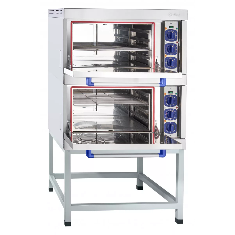 Четыре яруса в каждой камере вмещают несколько противней, а регулируемые опоры помогают настроить высоту под нужды кухни.